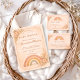 A warm and modern boho baby shower design featuring a soft neutral rainbow in earthy terracotta, sage, peach, and sand tones. Delicate dried florals and subtle textured details create an organic, minimalist look that feels both cosy and refined. Perfect for celebrating a mama-to-be who loves natural palettes, modern bohemian styling, and timeless simplicity.
