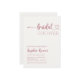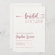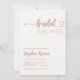 This invitation is a celebration of the understated beauty of simplicity. In a captivating rose gold hue, the text dances across the invitation, marrying modern aesthetics with boho chic. The majority of the invitation features a sleek block font, ensuring clarity and a contemporary vibe. However, the bride's name is delicately written in a charming script, adding a touch of grace and sophistication. The word "bridal" is playfully adorned with whimsical flourishes, culminating in a delightful bohemian heart at the end. These artistic details infuse the invitation with a sense of boho spirit and romantic allure.