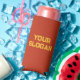 Minimalist Bold Red and Yellow Colours Personalised Can Cooler. Two different colours, on front of the can cooler is red colour and on back is yellow colour. This minimalist style is a perfect choice for company merchandise, company campaign, promotional giveaway or for client gifts. Just add your company slogan, custom text, company name/logo, client names or any other texts on the front and back of the can cooler to suit your needs. You can have the same message or two different messages (front and back).