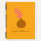 This striking notebook design features a rich mustard yellow backdrop with a modern brown vase and bright pink botanical stem. The clean, minimal illustration paired with a personalised name in elegant script makes it perfect for journalling, planning, or creative note-taking. Ideal for those who love bold colour and contemporary style.
