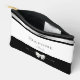 Celebrate your walk down the aisle with this stunning minimalist Bride accessories bag. Featuring crisp black and white typography and a delicate bow detail, this pouch is the ultimate "wedding morning" essential for keeping your touch-up lipstick and jewelry safe. It serves as a beautiful keepsake of your special day and a stylish addition to your bridal vanity. Part of the coordinated bridal collection, this bag pairs perfectly with our matching compact mirrors, tumblers and tote bags to create a high-end, personalized gift set. Whether it's for a morning-of vanity display or a thank-you gift, this "quiet luxury" accessory is a timeless keepsake.