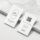 The vertical layout creates a sophisticated boutique style while the integrated QR code allows clients to quickly access your booking page, website, or social media.