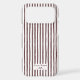A stylish and modern custom phone case cover for Apple iPhone and Samsung Galaxy models. Sweet hand painted watercolor vertical stripes in brown with a cut-out square space for your name. Easily personalize this yourself right on the platform. Choose your favorite color and your phone case model, and you have a beautiful customized accessory in minutes! This case is brown and there are several other colors available in this same trendy design. Your name is featured in a delicate and hand written classic serif typography inside a white cut-out with a cute bow!