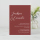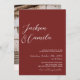 The "Minimalist Burgundy Photo Wedding Invitation" is perfect for a Christmas wedding, combining elegance with festive charm. It offers a blend of christmas wedding ideas and christmas themed wedding details, making it ideal for a December wedding. This invitation complements a burgundy wedding theme and is versatile enough for a black and burgundy wedding or a dark and moody wedding. It's also great for a fall wedding with moody wedding vibes, especially a moody fall wedding or dark moody wedding. The deep red tones make it suitable for a dark romantic wedding or wine red wedding, and it's a lovely choice for a winter wedding with a winter wedding aesthetic. Pink and burgundy wedding accents also shine, providing excellent fall wedding ideas and winter wedding ideas.