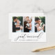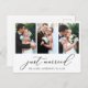 Modern Minimalist Simple, yet Elegant 3 Photo Delicate Calligraphy Script Just Married Wedding Announcement Postcard