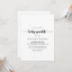 This minimalist calligraphy baby sprinkle invitation is perfect for a rustic baby shower. The simple and elegant design features classic and fancy script typography in black and white.