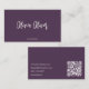 This minimalist dark purple plum business card features ample negative clean space for adding handwritten notes or information and a chic script calligraphy plus your custom QR Code.