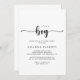 This minimalist calligraphy it's a boy baby shower invitation is perfect for a rustic baby shower or sprinkle. The simple and elegant design features classic and fancy script typography in black and white.