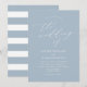 Invite guests to your wedding celebration with our Minimalist Calligraphy wedding invitations. The simple, elegant wedding invites display you wedding details in white accented by beautiful calligraphy script against a light blue. The back features light blue and white stripes. The design is part of our Minimalist Calligraphy wedding collection.