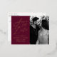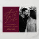 Announce your upcoming wedding in style with our Minimalist Calligraphy photo save the date postcards. The elegant save the date postcards feature the words "Save the Date" in a gold foil script with your names, wedding date, and wedding location with your photo on a burgundy background. The back of the foil save the date postcard features your return address and wedding details. Designed to coordinate with our Minimalist Calligraphy wedding collection.