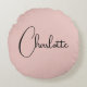 Minimalist Calligraphy Script Name Rose Gold Round Cushion
