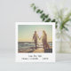 Unique and fun square save the dates that mimick the look of a retro instant photo with your names and date in a handwriting font. The picture has a filter over it to give it an aged look (the filter can be changed or removed by clicking the customise button). This cool and modern design is perfect for the minimalist couple having a casual wedding.
