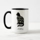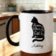 Set the tone for a whimsical birthday gift idea with this sophisticated coffee mug. The visuals feature a black cat silhouette paired with elegant cursive typography rendered in a classic black and white palette. It is the perfect way to celebrate a special milestone or a thoughtful gift for a dedicated cat owner.