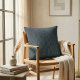 The deep blue-charcoal palette draws from Japandi and quiet luxury aesthetics, making it a natural fit for neutral, earth-toned interiors, modern bedroom styling, or minimalist living room arrangements. Whether layered against linen bedding or placed on a structured sofa, this pillow anchors a space with understated elegance.