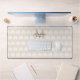 Minimalist Chic Beige Anahaw Leaf Script Monogram Desk Mat