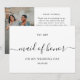 Express your gratitude with our Minimalist Chic To My Maid of Honour Wedding Day Invitation. This beautifully simple invitation features a clean design with elegant typography, perfect for conveying your heartfelt message in a stylish and sophisticated way. The minimalist aesthetic lets your words take centre stage, making it a memorable way to ask your Maid of Honour to play a special role on your big day. Personalise it with your wedding details and a personal note to make it truly unique. For custom designs and more bridal stationery, contact us or follow us for the latest updates.