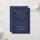 An elegant Christian wedding invitation featuring a beautiful opening in white script font - Desiring God's will for their lives and believing that it includes each other, classic serif font, all on a sophisticated navy background.