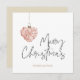 A beautifully minimalist Christmas card featuring a delicate watercolor illustration of a Christmas ornament in the shape of a pink heart. The simple design, paired with the elegant "Merry Christmas" message and customisable family name, adds a personal and refined touch to your holiday greetings. Perfect for sending warm wishes to friends and family, this card brings a cosy, sweet charm to your festive correspondence.