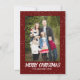 A minimalist and modern chic photo Christmas card provides a sophisticated yet simple and elegant Merry Christmas wish. The background is a stylish and subtle snowfall vibe in muted light tones on red. The contemporary Merry Christmas greeting, family name and year, are done in a clean white crisp bold holiday script and sans serif typography. The image is a placeholder to be replaced with your own photo. Adjust as necessary. #Christmas #Minimalist #Modern #Family
