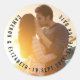 Minimalist Circle Text Simple Save The Date Photo Classic Round Sticker