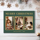 Minimalist Classic Christmas Green Three Photo Holiday Card