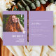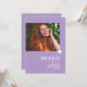 A modern minimal chic 2026 graduation party invite in soft lavender/lilac, featuring fully customizable elements like the photograph and name and graduation information on the front, and on the back the party details in elegant classic scripts.