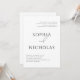A timeless minimalist wedding invitation designed for couples who love clean, modern elegance. This classic black and white typography layout features refined serif lettering for the couple’s names and a subtle script “and” accent for a sophisticated editorial look. The result is a simple, high end style that feels both traditional and contemporary. Perfect for formal, black-tie, modern classic, or city weddings. Fully personalize all details. The minimalist layout keeps the focus on what matters most while staying polished and easy to read for guests. Great for ceremonies and receptions at hotels, ballrooms, and elegant venues. And also works beautifully for destination and beach weddings when you want a crisp, refined invitation that complements any color palette. Available as both a printed card and a digital download.