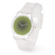 Featuring a sleek design, this unisex timepiece offers a clean 3D effect black and wasabi green dial with simple, minimalist hands and a comfortable clear strap.