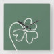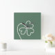 Minimalist Clover Leaf Line Drawing Green Square Wall Clock