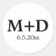 Add a sophisticated finishing touch to your wedding envelopes and treat bags with this timeless black-and-white sticker. Designed with simplicity and elegance in mind, the sticker showcases your and your fiancé's first initials alongside your wedding date in a refined serif font. The minimalistic design ensures a classic, understated look that complements any wedding theme, while the bold typography adds a touch of personal significance. Perfect for sealing envelopes or adding a special detail to favour packaging, these stickers bring a cohesive, polished feel to your celebration.