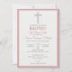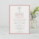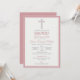 Invita a tus seres queridos a conmemorar tanto el bautismo como el primer cumpleaños de tu pequeño con esta invitación minimalista, que presenta una cruz simple y letras rosa claras. Personaliza esto con los detalles de tu evento y tu colour preferido.