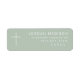 Modern, light sage green return address labels with your name and address in a modern sans serif font, and a simple, elegant Christian cross. You can change the background and font colour to any custom colour with the customisation tool.