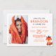 Minimalist Cute Little Fox Zigzag Photo Birthday Invitation