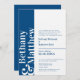 Modern clean lines simple classic blue and white text black panel to one side wedding invitations. Perfect for a simple minimal or modern wedding. Edit this invitation with your own names, wedding details. Other matching items are available. Designed by www.mylittleedenweddings.com