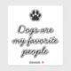 This sticker features the playful quote, "Dogs are my favourite people" with a little paw print.