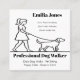 Front Design: The card features a simple, stylish line drawing of a person walking a dog, conveying a sense of trust and professionalism. All the text is fully customisable, including the name, contact information, and list of services—from daily dog walks to puppy visits.