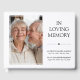 Double memorial service guest book in white with black text and a photo printed in colour. In loving memory written in an elegant standard font. The double funeral guest book features a photo template where you can add your own photo of your loved ones, perfect for a husband and wife memorial service or husband and wife funeral service. Personalise by writing their names and years living. The perfect keepsake for the double funeral of your mother and father or grandparents where your guests can record their thoughts and memories of the loved ones you've lost.