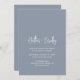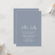 Modern wedding invitation featuring a simple design with your names in an elegant script typography and your event details in a minimalist sans serif font. All design elements are in white over a dusty blue background. This chic wedding invitation works well with any style of wedding in the spring, summer or winter.