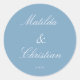 Add a warm, modern touch to your wedding stationery or favours with this Minimalist Dusty Blue Wedding Classic Round Sticker! Designed for couples who love earthy tones and clean aesthetics, this sticker is perfect for sealing envelopes, decorating favour boxes, or enhancing welcome bags.