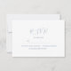 Modern minimalist RSVP card with elegant dusty blue text and soft layout. A perfect match for any romantic and simple wedding suite. Easily personalise with guest response details. For customisation help, email bpkolman@gmail.com.