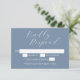 Simple minimalist elegant script in dusty blue wedding RSVP card.