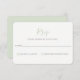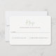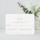 Simple dusty sage wedding RSVP cards. Minimalist design style features, simple script in dusty sage. Back of card, shown in solid dusty sage, features two template text lines for names and date.