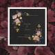Minimalist Elegant Boho Black Gold Floral Wedding Napkin