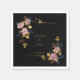 Minimalist Elegant Boho Black Gold Floral Wedding Napkins
