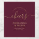 Elegant "Cheers to happily ever after" wedding/engagement wine bottle. Featuring chic gold lettering on burgundy background with minimalist, modern and classy typography style. All text is customisable, personalise with couple/ bride and groom's names and wedding/engagement place and date. Perfect for wedding/engagement gift or party favour.