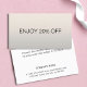 Minimal fully customisable discount card with faux silver background and bold fonts.
