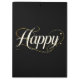 A sleek and elegant "Happy" design featuring ivory lettering accented by thin, sophisticated gold swirls and dots. This minimalist yet classy artwork is perfect for a refined and timeless aesthetic