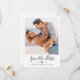 Minimalist Modern Elegant Calligraphy Script Photo Wedding Save The Date Cards in Black and White. This design is tailored for modern weddings, emanating an enchanting romantic allure. With its graceful one photo and captivating hand-lettered font and love heart motif, these cards encapsulate contemporary elegance. Personalise each card with your treasured wedding details and picture, offering a sophisticated way to announce and celebrate your extraordinary day.