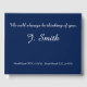 This basic funeral or memorial guestbook features the message "We will always be thinking of you,", along with a customised name, and birth/death dates. It also features a dark blue background, and white text. It could be used to record sympathetic wishes for the relatives and friends of somebody who has recently passed on.