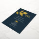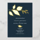 These wedding invitations blend modern sophistication with classic stylish charm, featuring real gold foil botanical leaves elegantly framing your event details. Set against a rich midnight blue background, this minimalist design offers a timeless yet simple aesthetic. The combination of sans-serif and script typography adds an elegant touch, making it perfect for evening celebrations.